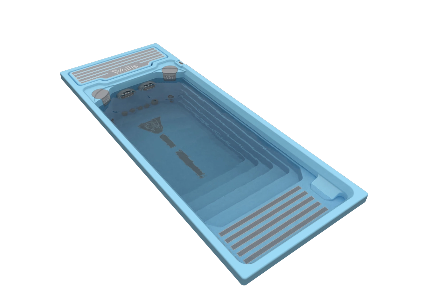 Mit seinen Abmessungen von 6 x 2,35 Metern ist der Pool auf maximalen Komfort und Funktionalität ausgelegt. An beiden Enden befinden sich Liegestühle, von denen einer 10 cm unter dem Wasserspiegel positioniert ist und somit den perfekten Platz zum Entspannen bietet.