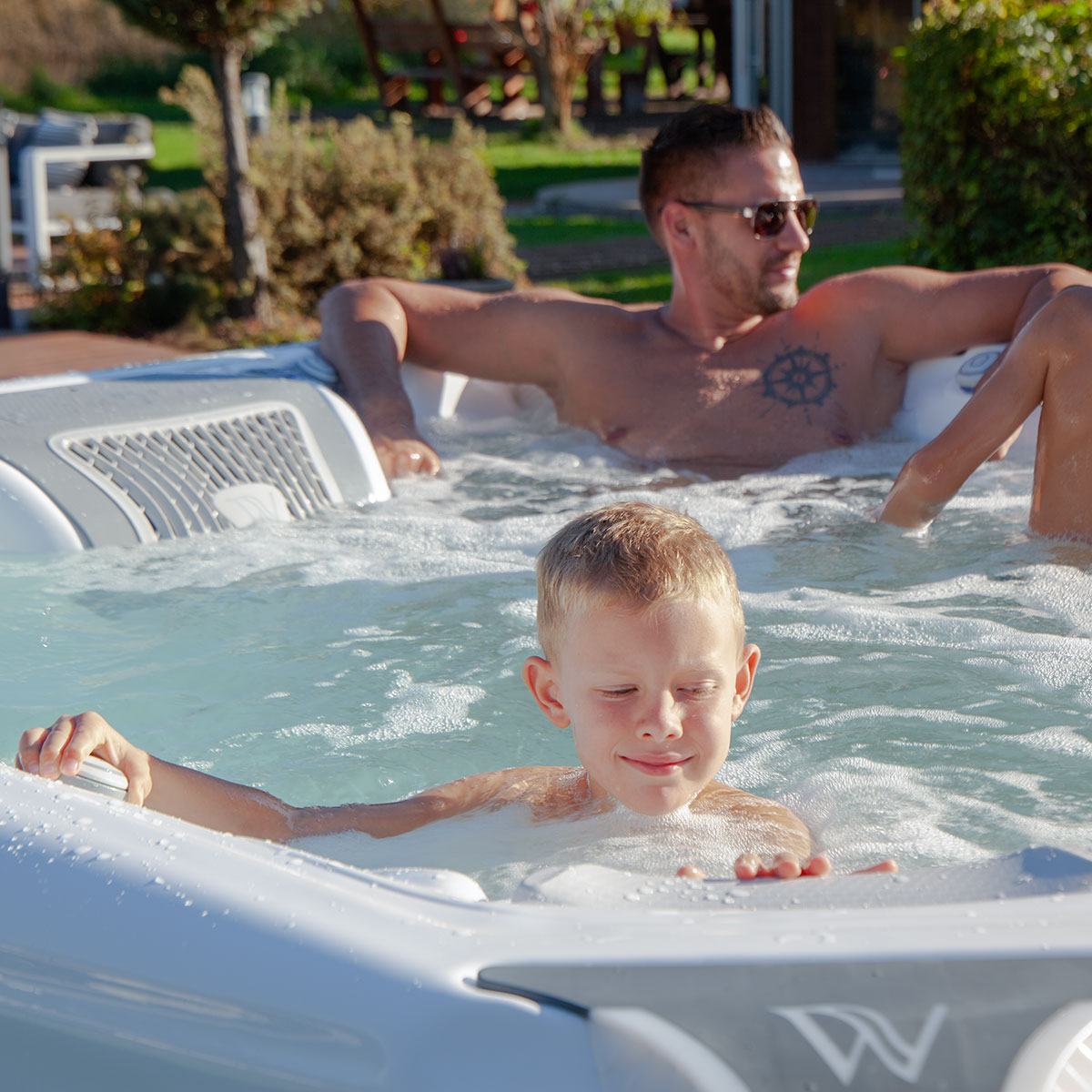 Der Wellis Elbrus Life Whirlpool bietet Platz für 7 Personen, so dass Sie die ultimative “Schulter-zu-Zeh”-Massage mit den Menschen genießen können, die Ihnen am wichtigsten sind. Die Unendlichkeitsdüse macht das Massageerlebnis noch angenehmer, da sie einen größeren Teil des Körpers massiert und sich nicht nur auf und ab bewegt, sondern eine unendliche Acht zeichnet, während sie sich dreht. Beleuchtete, versteckte Lautsprecher und flache Fontanendüsen sorgen für das perfekte Spa-Erlebnis.