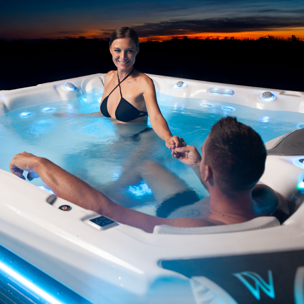 In den PeakLife-Whirlpools kommt das LightSide™-Schranksystem zum Einsatz, das eine versteckte Beleuchtung unter den Eckelementen und einen selbst entwickelten LED-Streifen umfasst, der entlang der seitlichen Abdeckung des Whirlpools verläuft.