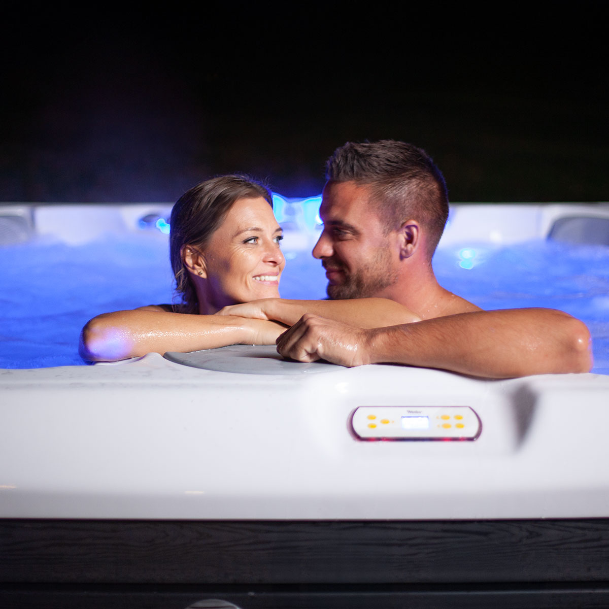 Die exklusive Farbtherapie-Beleuchtung ist eine direkte Unterwasser-Stimmungsbeleuchtung, die in die Seitenwand des Whirlpools eingebaut ist. Sie besteht je nach Whirlpool-Typ aus 10 bis 20 LEDs, die in Harmonie mit der im Whirlpool installierten zentralen Unterwasser-Farbtherapiebeleuchtung leuchten.